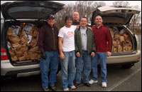 I.Fly Volunteers (left)Tony Rosamilia & Anthony Rosamilia with Rose Brucia Board Members (center to right) Sean Wall, Ron Barbis & Matthew Barbis and two of the three SUV's on the third stop of the morning - look at all the food! |